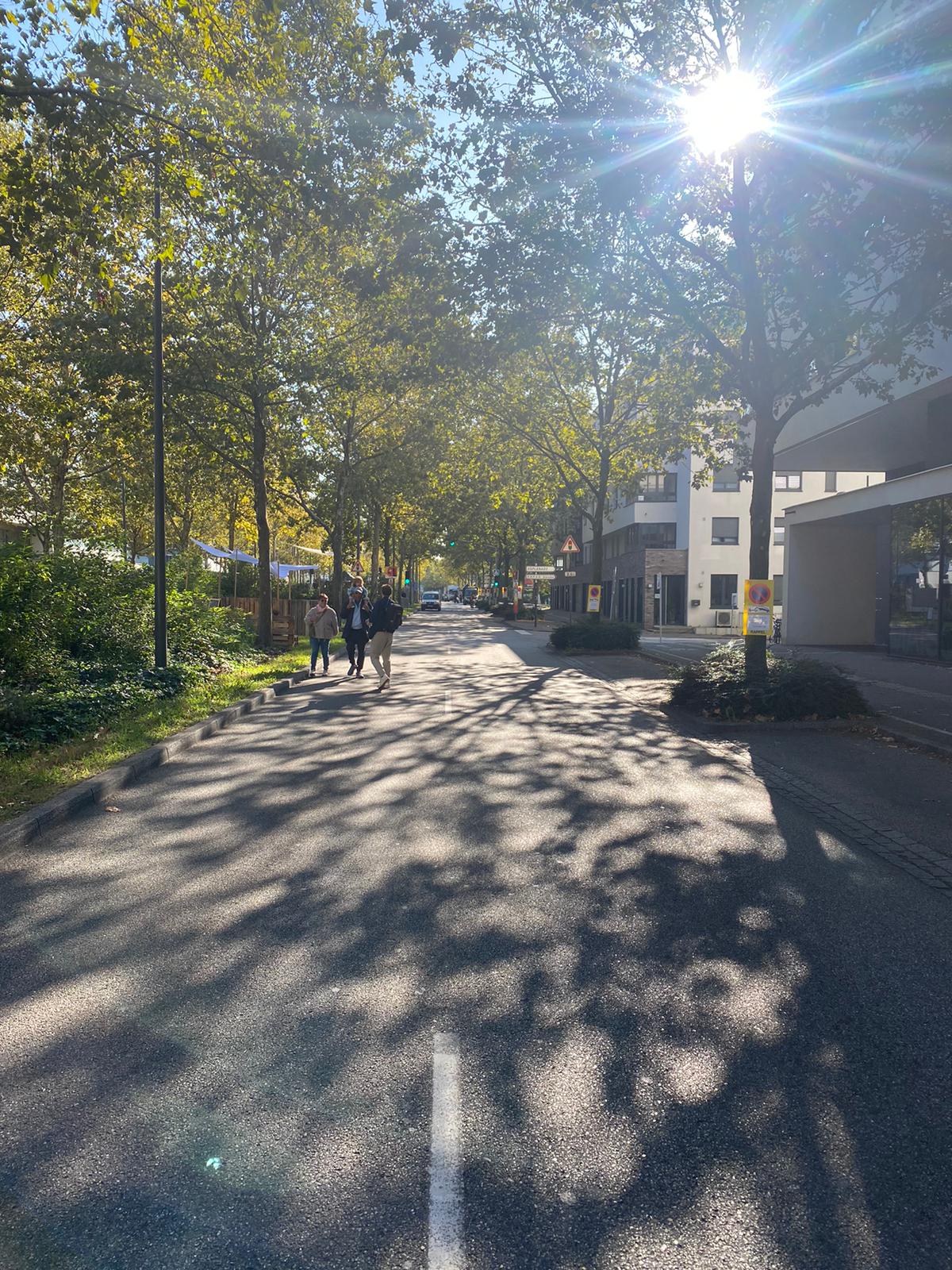 Nous nous sommes installés sur le terre-plein central de l’Avenue du Rhin pour prendre un improbable petit-déjeuner dans les embouteillages. Le bruit permanent est la première dégradation de notre qualité de vie. Trop de circulation, trop de pollution : nous réclamons le passage de cette avenue à deux fois une voie.